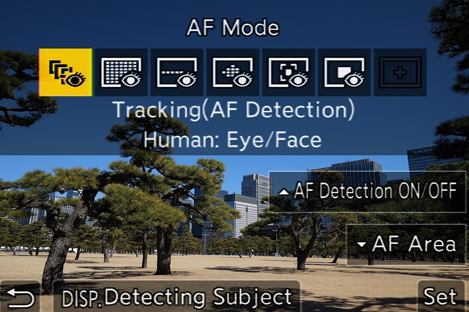 Autofocus options on a Panasonic camera.