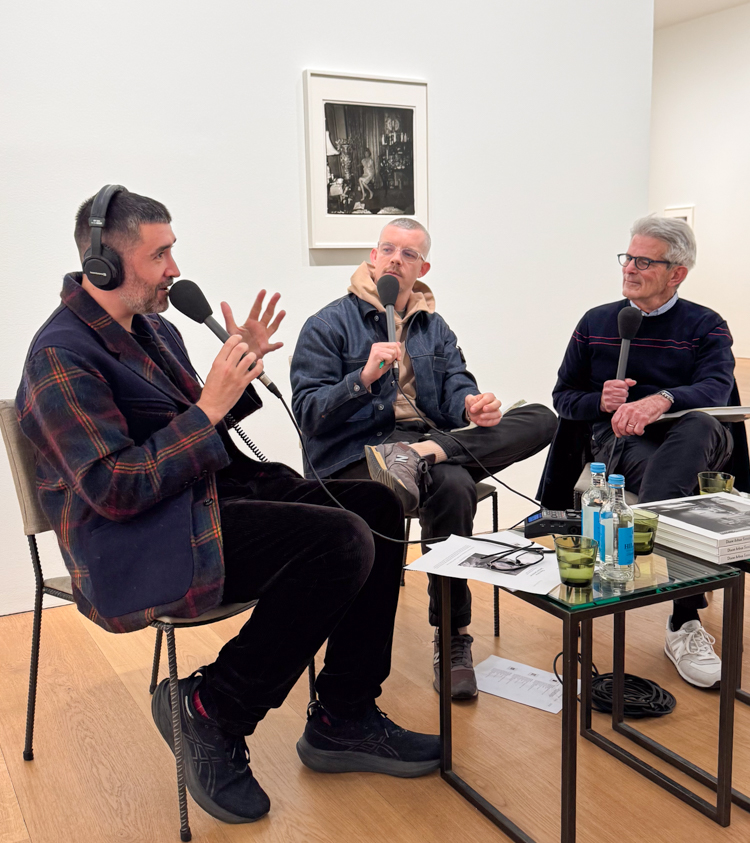 | Images in GIF by DIANE ARBUS: Brenda Diana Duff Frazier, 1938 Debutante of the Year, at home, Boston, Mass. 1966; Nancy Bellamy’s bedroom, N.Y.C. 1961; Lucas Samaras, N.Y.C. 1966; Mae West in her bedroom, Santa Monica, Cal. 1965 © The Estate of Diane Arbus; Robert Diament and Russell Tovey talk with Jeffrey Fraenkel at David Zwirner, London, 2025. |